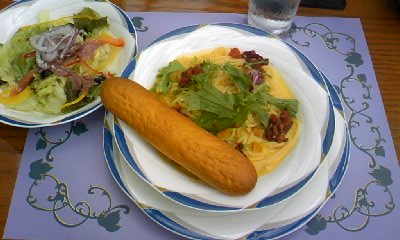 お昼に食べたカボチャパスタ。