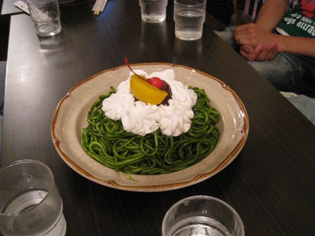 ・甘口抹茶小倉スパ…パスタは抹茶で苦い。次にキツイと思う。でも1口2口ぐらいならまだいけると思う。